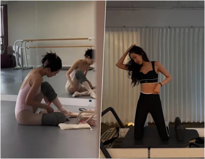 또 다른 사진에서는 손나은이 몸매 관리를 위해 여러 운동 중인 모습이 포착됐다. 평소 늘씬한 슬렌더 자태가 돋보이는 손나은은 발레는 물론이고, 필라테스 등 다양한 운동을 즐기는 모습으로, 특히 기구를 활용해 유연한 자태를 뽐내 감탄을 자아내기도 했다.