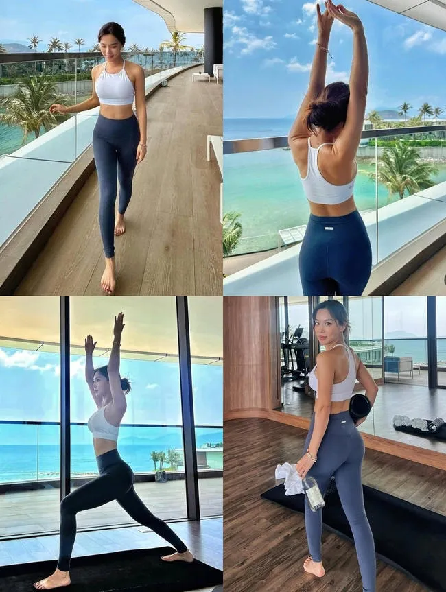 사진 속엔 베트남 나트랑의 한 호텔에서 요가로 하루를 시작하는 김희정의 모습이 담겨 있다. 브라톱에 레깅스 차림의 김희정은 군살이 하나도 없는 탄탄한 몸매로 건강미를 뽐낸다. 꾸준히 관리한 복근과 매끈한 어깨 라인, 우월한 힙라인이 감탄을 유발한다.